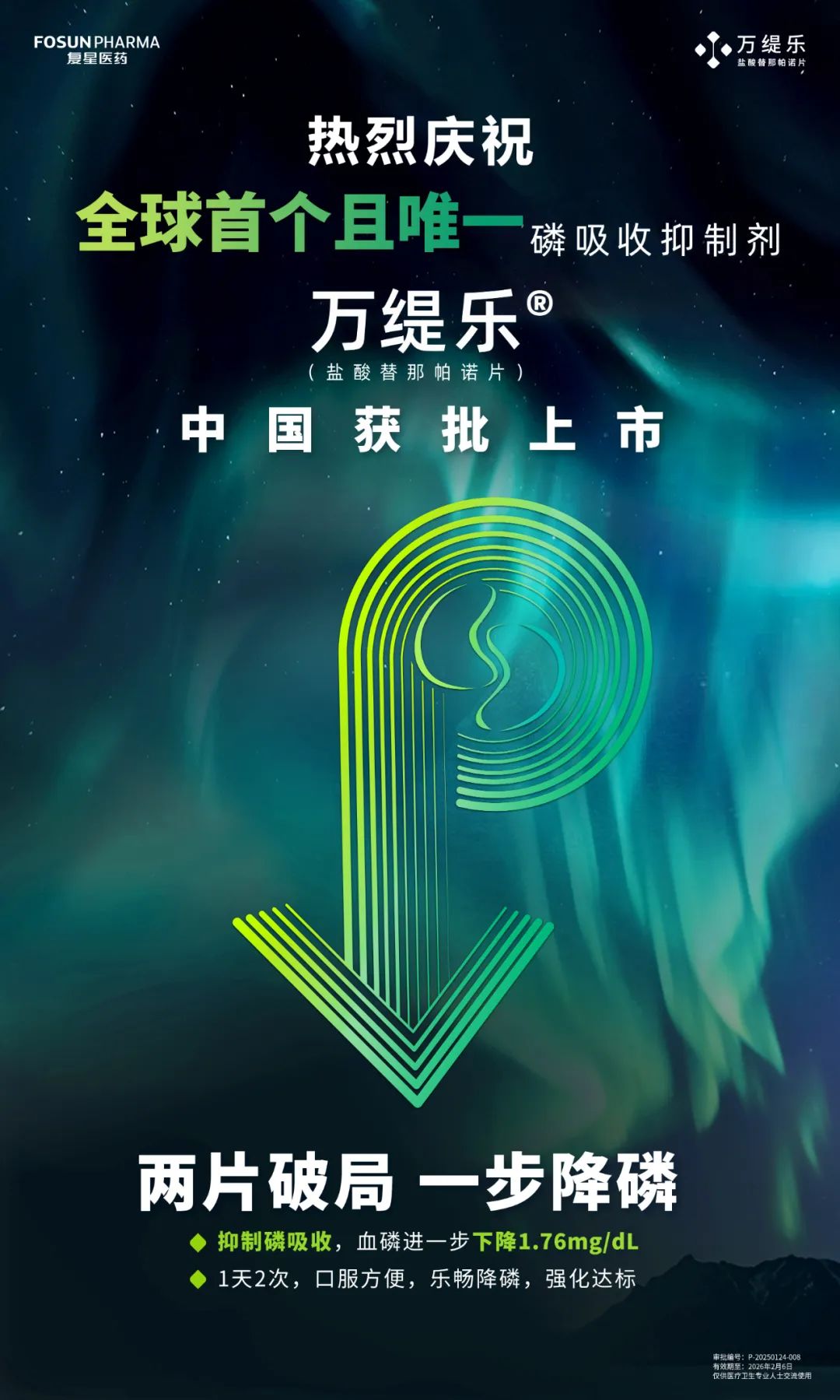 作为全球首个且目前唯一获批的磷吸收抑制剂,此次万缇乐®在中国正式获批,开启了多种机制协同降磷的新时代,为中国透析高磷血症患者带来新的希望。