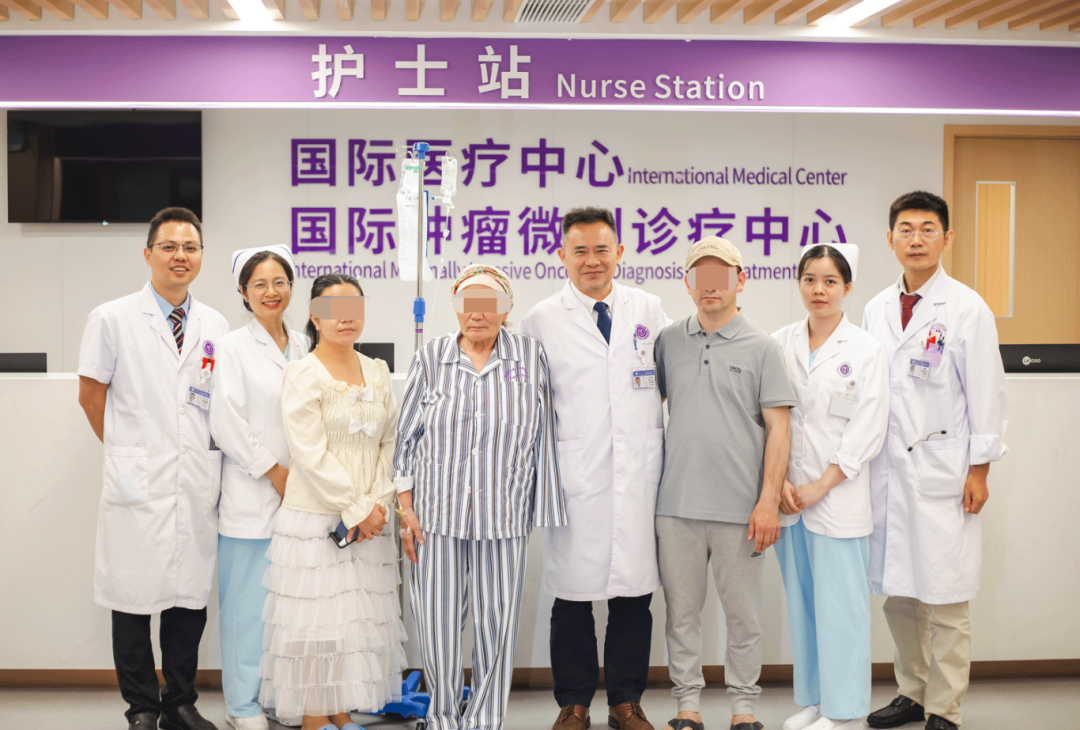 ▲患者及家属与国际肿瘤微创诊疗中心医疗团队合影