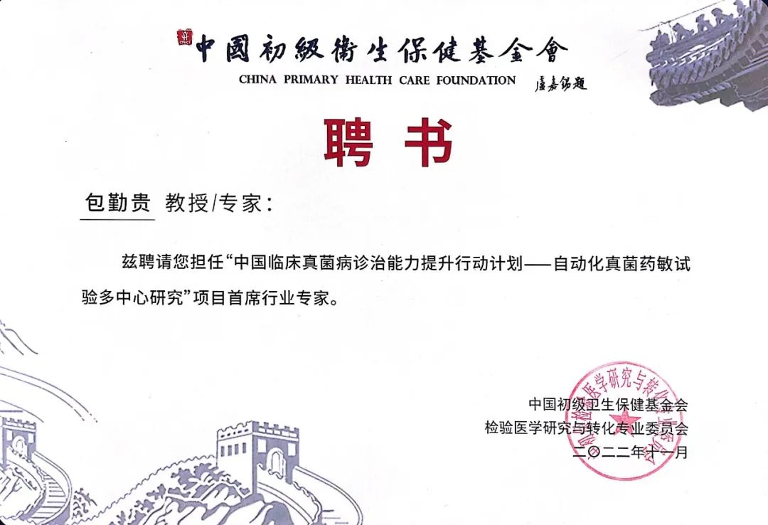 共筑健康长城!SBOBET利记官网诊断董事长包勤贵被聘为中初保检验医学研究与转化专业委员会首席行业专家