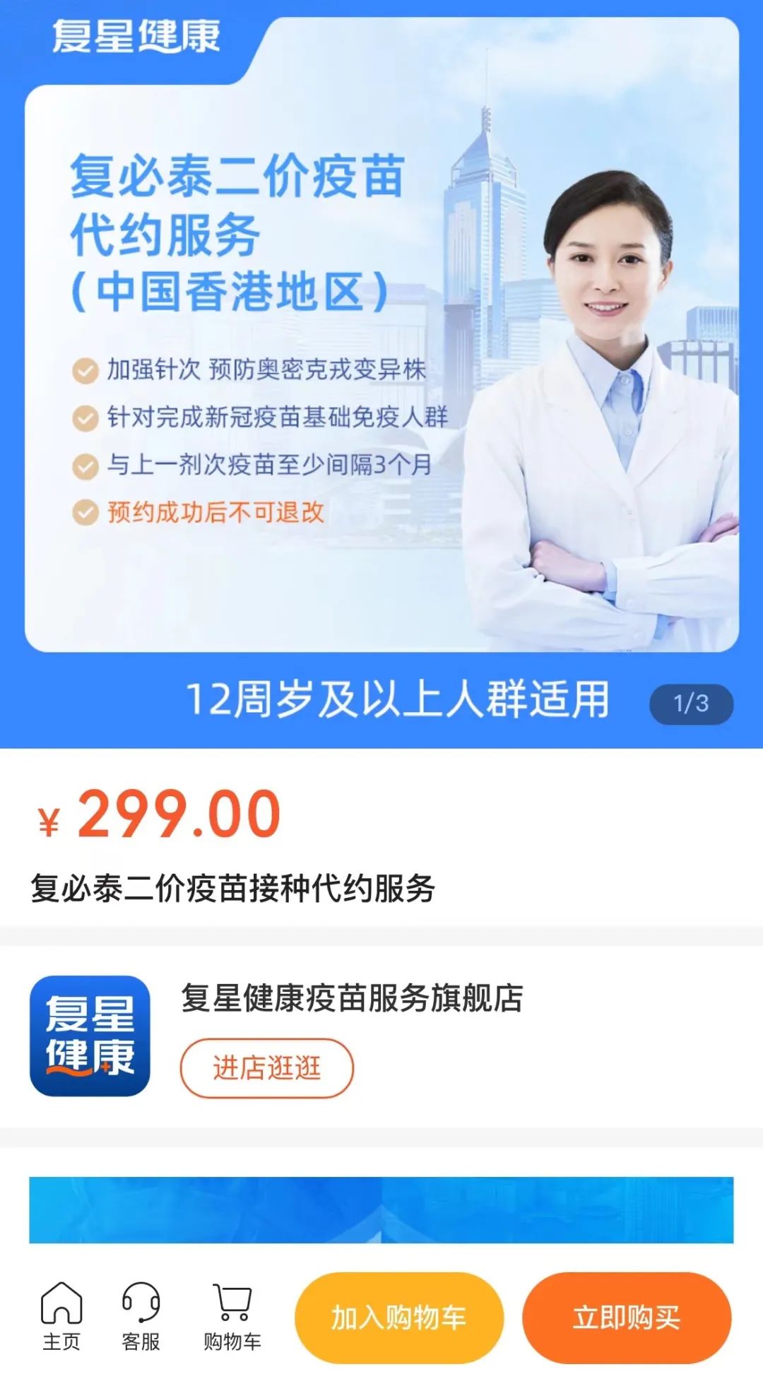 2.购买299代预约服务,并在订单中找到代预约服务,阅读同意相关条约后,填入信息并完成健康评估;